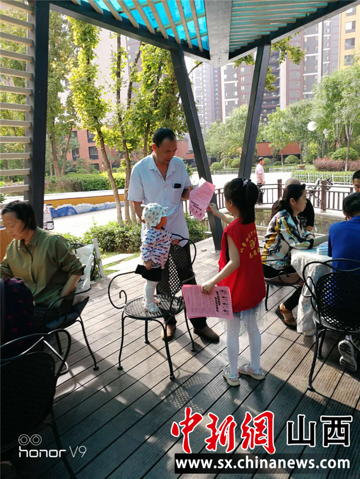 中新网山西新闻9月9日电 近日,太原市小店区北营街道万科城社区志愿服务队20多名志愿者向小区居民发放《太原市垃圾分类告居民书》,传播垃圾分类新风尚。为了提高活动实效,志愿者们与小区居民、商铺业主拉起家常,用身边的实例生动讲述垃圾分类知识,宣传低碳环保理念。