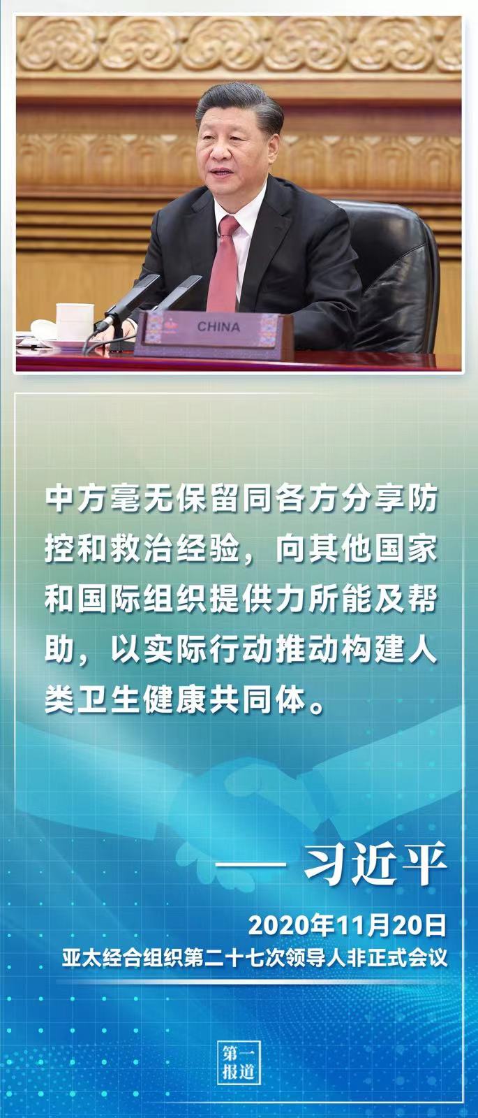 新冠疫情发生以来,习近平亲自推动开展国际合作,呼吁各国团结合作战胜疫情,共同构建人类卫生健康共同体。截至2021年4月,中国已向世界卫生组织提供5000万美元现汇援助,向34个国家派出37支医疗专家组,已经或正在向151个国家和14个国际组织提供抗疫援助,并向联合国新冠疫情全球人道应对计划提供支持,有力支持了国际社会疫情防控。