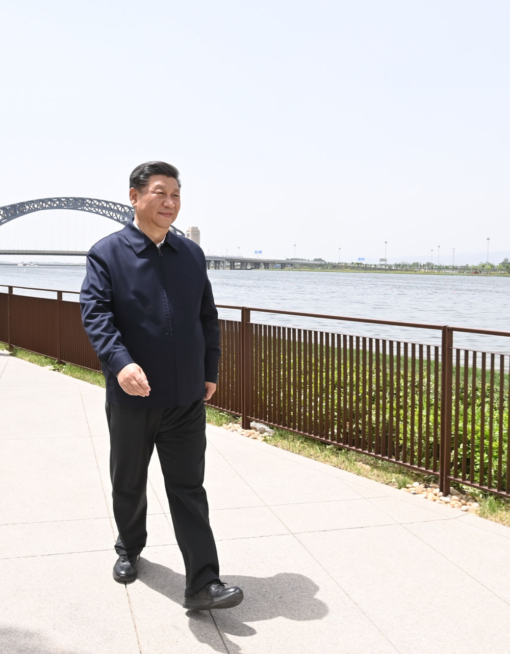 2020年5月11日至12日,习近平在山西考察。这是5月12日,习近平在汾河太原城区晋阳桥段了解生态环保和污染防治等情况。
