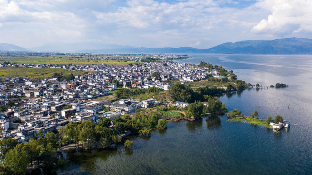 云南省大理市古生村村貌与洱海风光