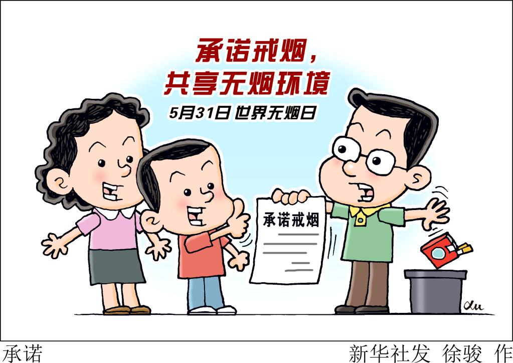 漫画:承诺戒烟,共享无烟环境(世界无烟日) 新华社发 朱慧卿 作