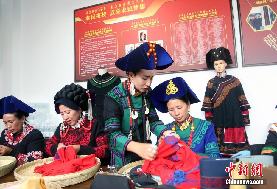 9月11日,小山村农民夜校的学员们在教室内学习彝绣。四川省凉山彝族自治州冕宁县冕山镇小山村农民夜校于2016年7月正式挂牌成立,夜校以“学文化、学政策、学技能、树新风”为主要内容,举办烹饪、彝绣、农业技术、机械操作技能等培训班,累计培训1500余人次,200多人取得了特种作业资格证,帮助民众增强了致富能力。中新社记者 王磊 摄