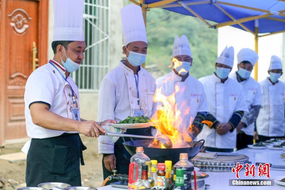 9月11日,中式烹调师范道树(左一)为学员演示一道川菜的做法。中新社记者 王磊 摄