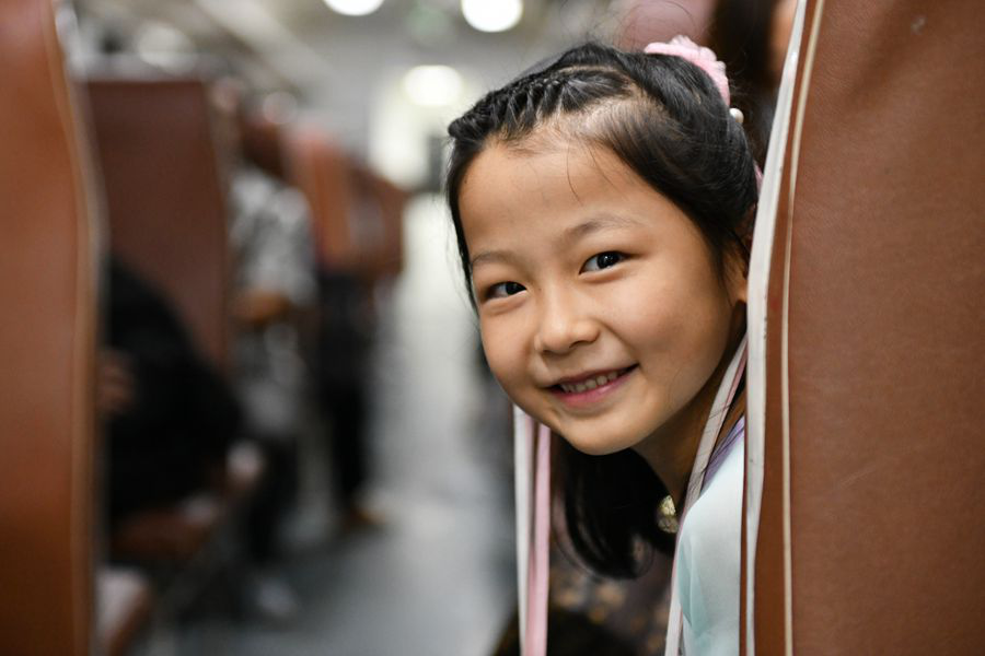 开学前夕,从宁强站上车前往汉中的小学生旅客愉快乘车。(8月22日摄)