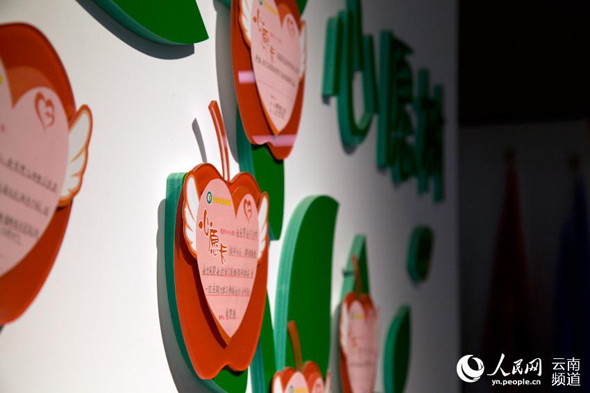 会泽县新时代文明实践中心的墙上贴着搬迁户的心愿。人民网 程浩 摄