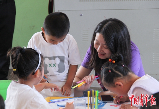 志愿者与乡村儿童互动。中青报·中青网见习记者 刘俞希/摄