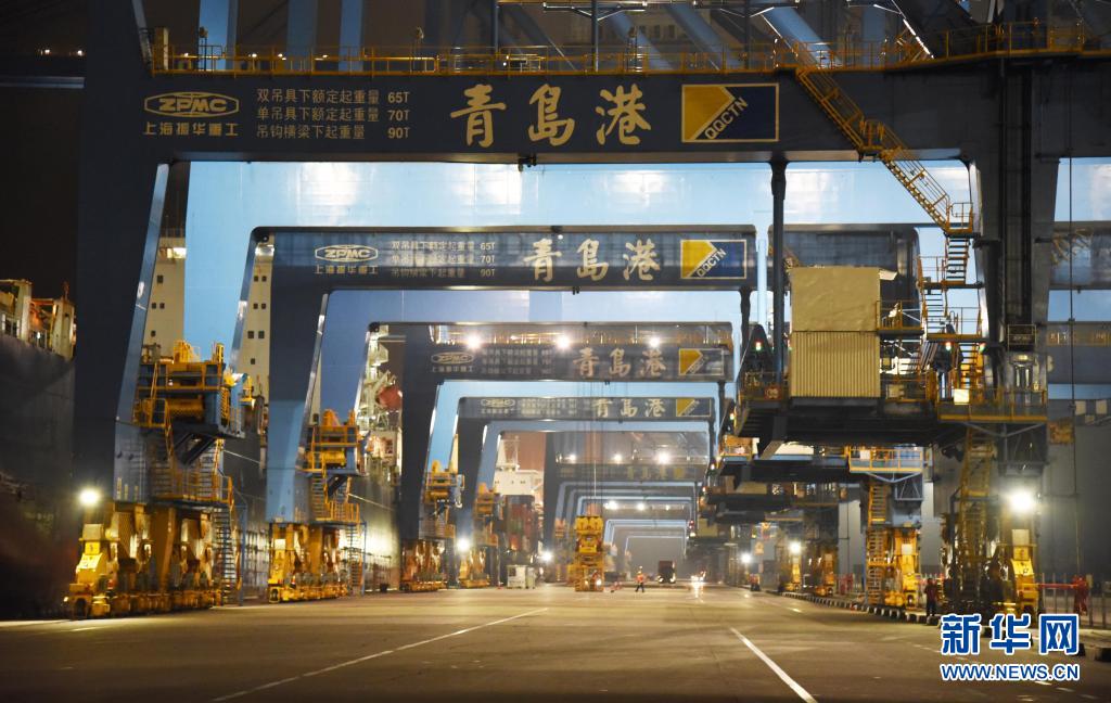 这是7月1日凌晨拍摄的山东港口青岛港全自动化集装箱码头。新华社记者 王凯 摄